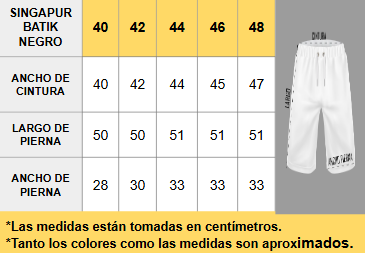 Tabla de medidas